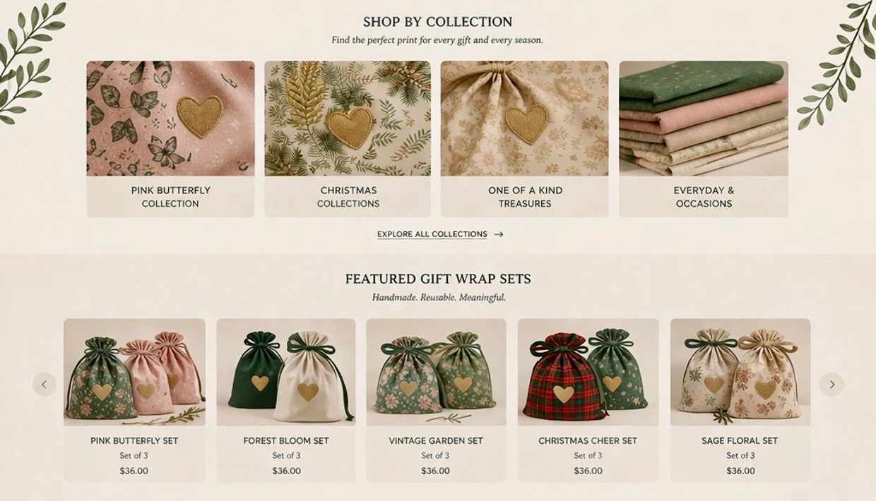 Elegant, eco-friendly fabric wrapping to make your gifts stand out.